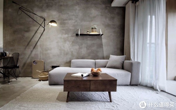 家具選擇上,輕巧實用為原則。粗獷的水泥背景墻,搭配上灰白色單扶手沙發,簡潔干練有品位。