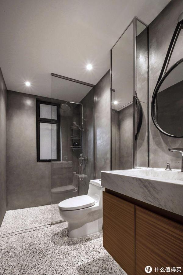 衛生間雖小,但裝修的也很有品位。地面水洗石工藝,防滑效果好個性突出,不想鋪地磚的朋友可以嘗試一下。